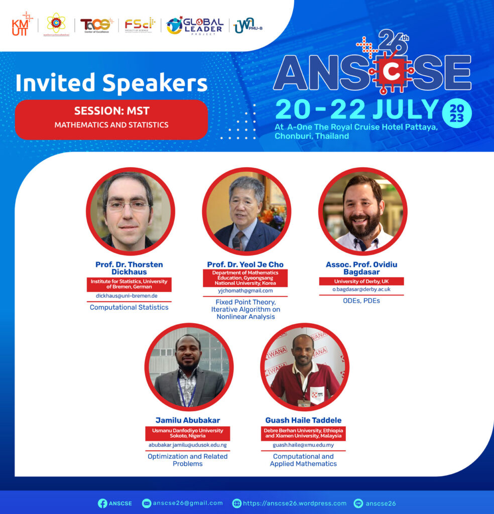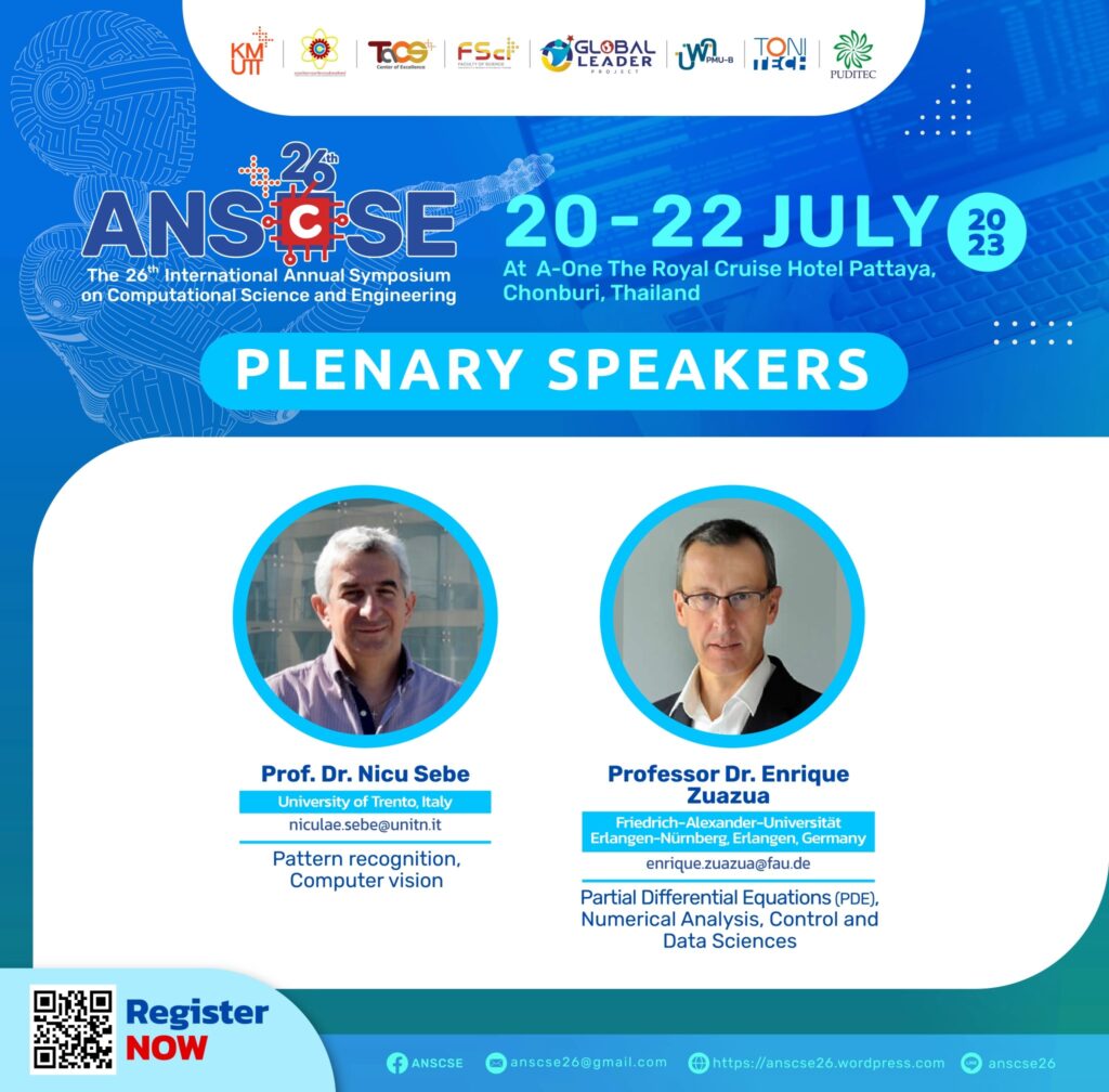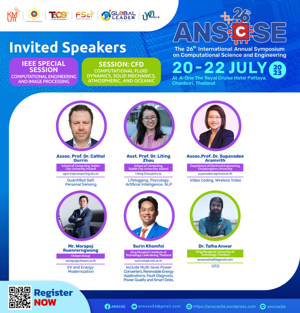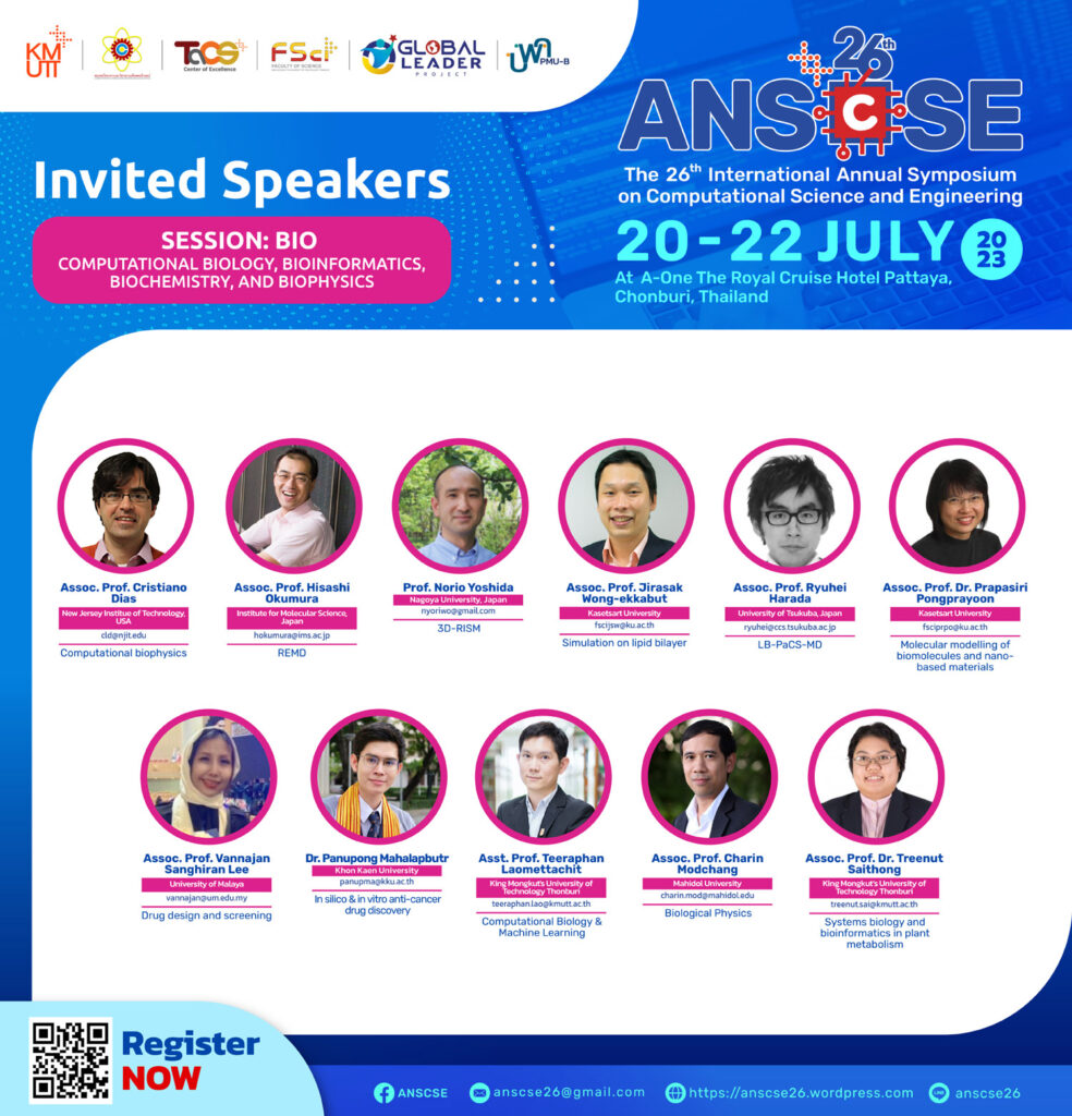 We are glad to invite you to attend the 26th International Annual Symposium on Computational Science and Engineering (ANSCSE26) hosted by Center of Excellence in Theoretical & Computational Science (TaCS-CoE), Faculty of Science, King Mongkut’s University of Technology Thonburi (KMUTT) in 2023. Further details will be announced soon.